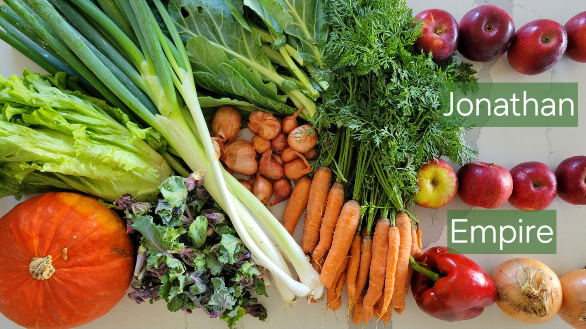 The CSA Club as a whole will have gone through nearly 4,000 lbs of produce over the season. We’ve enjoyed about 36 different types of vegetables and fruit with a total of more than 70 unique varieties across those produce items. The most frequent items we had (>5 times each) were apples, lettuce, onions, carrots and peppers. Not far behind were kale, sugar snap peas, summer squash, corn, and winter squash. Just to name a few other highlights we received in the shares, we also had strawberries, joi choi, english peas, melon, and tomatillo. It’s been a satisfyingly delicious season.